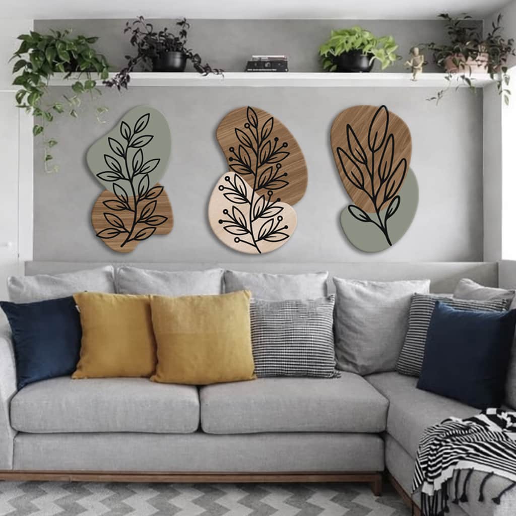 O Trio de Quadros Orgânicos Folhagens é uma peça de destaque para quem busca uma decoração elegante, natural e contemporânea. Inspirado em formas orgânicas e no design botânico minimalista, ele combina madeira, cores suaves e linhas marcantes, criando um visual sofisticado e atemporal.